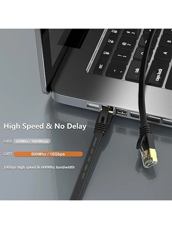 - 【10Gbps & 600MHz】The transmission rate of cat 7 Ethernet cable is higher than cat5e/cat6a, support bandwidth up to 600MHz & transmitting data at speeds of up to 10Gbps.