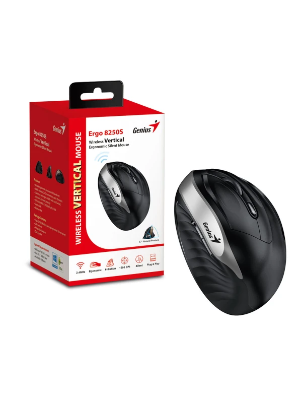 - The Genius Ergo 8250S wireless vertical ergonomic silent mouse allows your right hand in a more natural posture.