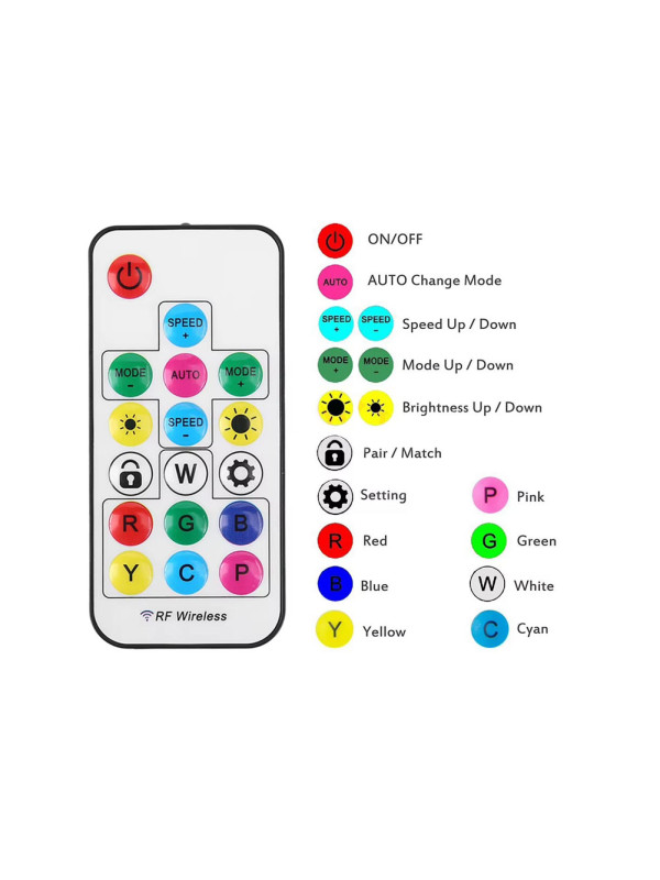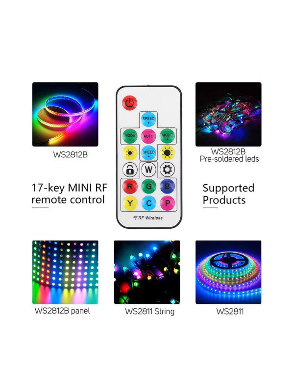 2. Input voltage: Special interface for computer case, power supply 5V/3PIN. RF17 button 2.4G RF remote control, 360 degrees without dead angle.
