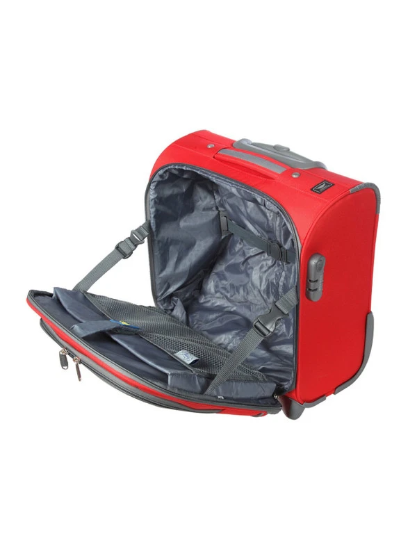 The maximum height of the retractable handle is 64 cm, the volume is 33 l. Weight 2.5 kg.