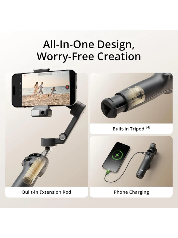 - Streamline Your Creativity - Osmo Mobile 7P's built-in extension rod and tripod [4] let you capture wide selfies and steady vlogs with ease, offering creative freedom without the hassle of extra gear.