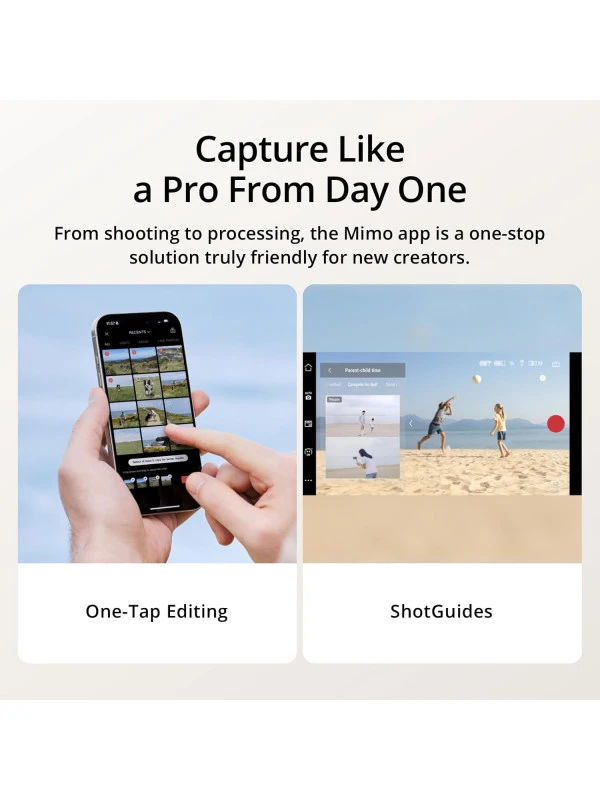 - Capture Like a Pro From Day One - Pair your Osmo Mobile 7P with DJI Mimo for ShotGuides and One-Tap Edit. Film and edit like a pro, saving time and enhancing your creative storytelling instantly.