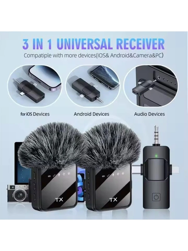 - Versatile 3-in-1 Wireless Lavalier Mic: The F11-2 wireless lavalier microphone is designed for smartphones, cameras, and computers, offering seamless compatibility with multiple devices. Ideal for live video recording, vlogging, interviews, and content creation.