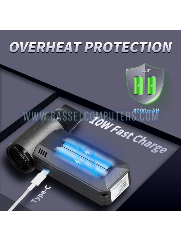 - ✅【Long Lasting Battery & Fast Charging】The cordless air duster built-in Large double 4000mAh capacity battery and battery is equipped with temperature protection, current protection, and short circuit protection. The compressed air cleaner with a USB Type-C charging cable, supports 10W fast charging. Once fully charged, it can last up to 3-4 hours.