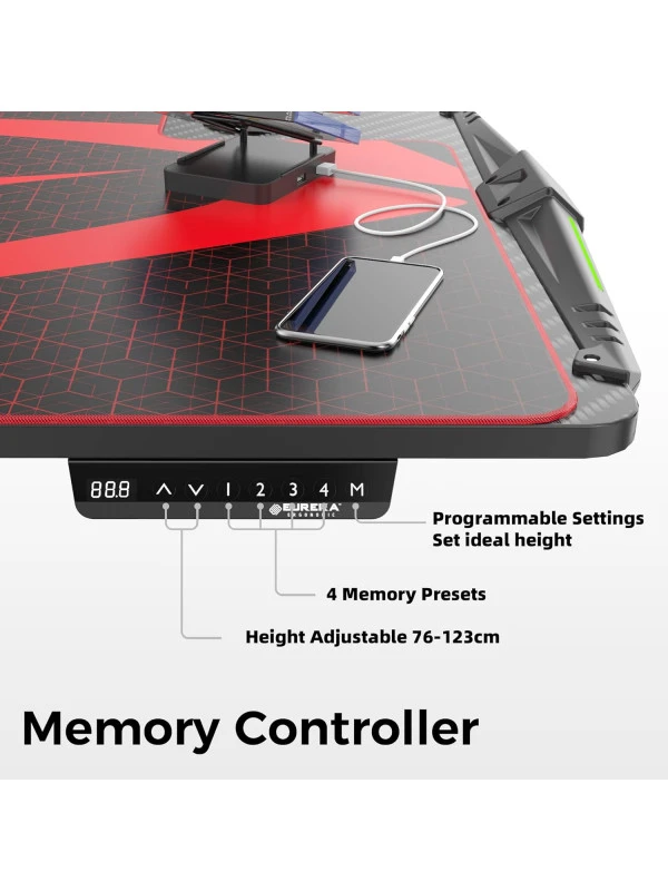 - Sturdy Y-shape legs and high-quality metal make this desk a stable and sturdy gaming workstation with a large carbon fiber surface and gamer-friendly design.
