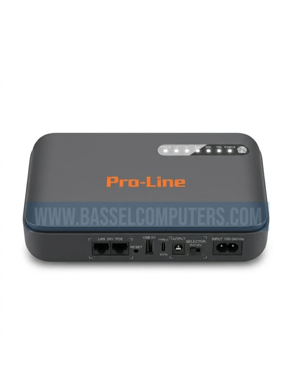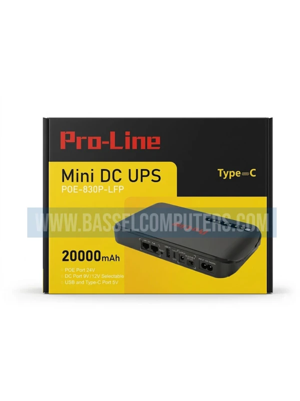 The Pro-Line Mini DC UPS POE-830-LFP is a high-capacity backup power solution designed to keep your essential devices running during power outages. With a powerful 20000mAh battery, it provides extended backup time for devices such as routers, modems, IP cameras, and CCTV systems.