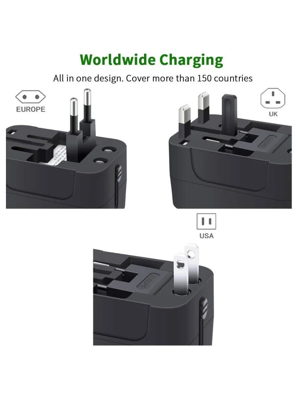- All-in-one Adapter with Fuse protect, Built-in Safety Shutters, LED Power Indicator.