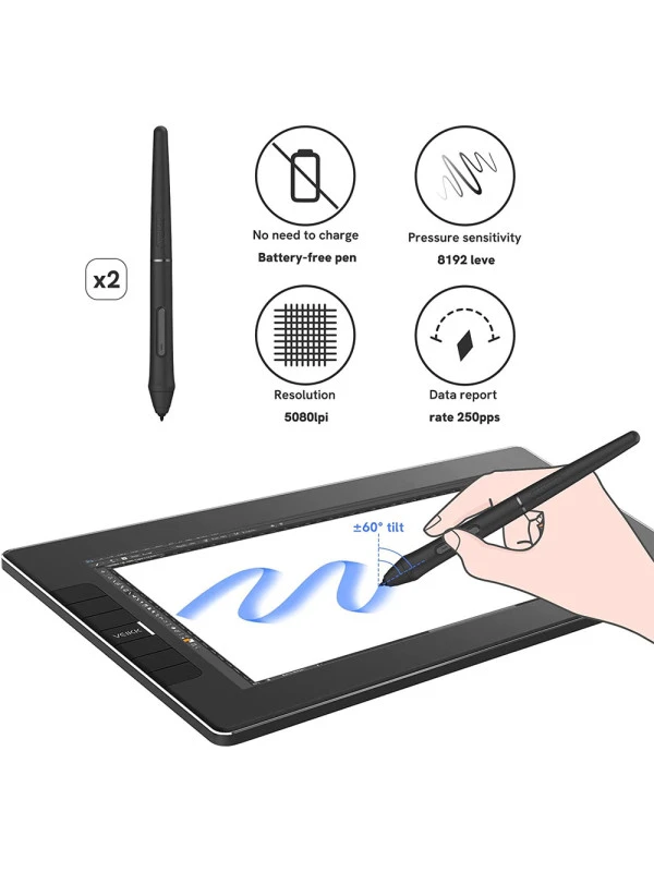 - VK1200 drawing monitor provides the battery-free pen with 8192 levels pen pressure, and it supports up to 60 degrees tilt function. The pen don't have battery and no need to charge for uninterrupted use.