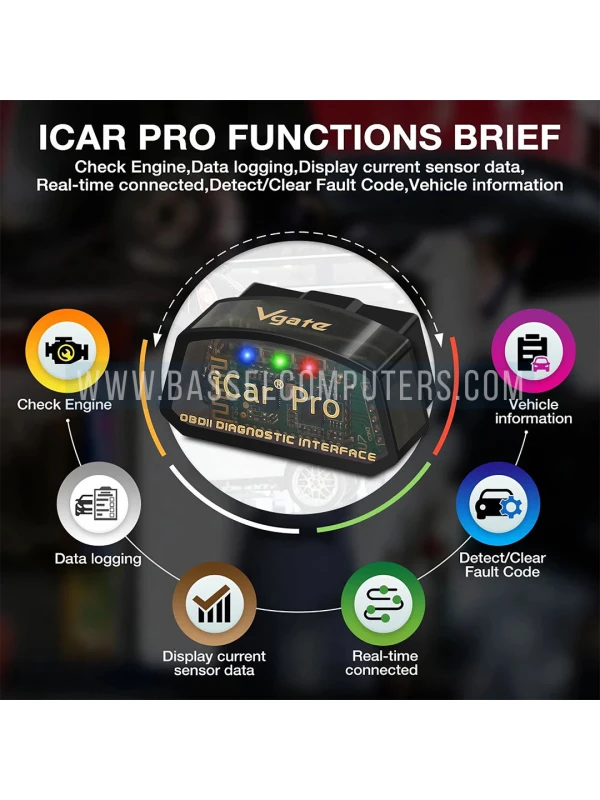 OBDII Engine System Diagnostic Tool: The firmware version of iCar Pro has been updated to ELM327 V2.2. V2.2 contains additional instructions for reading further data and vehicles. It works mainly on the engine system. Reads real-time data. Clears fault codes from the MIL.