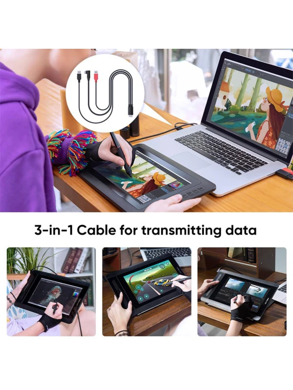 - 3-in-1 for Tidy Desk: This 3-in-1 Cable comes with HDMI, Type-C, and USB-A; it makes your desktop cleaner, your creations clearer, and serves as practical drawing tablet accessories